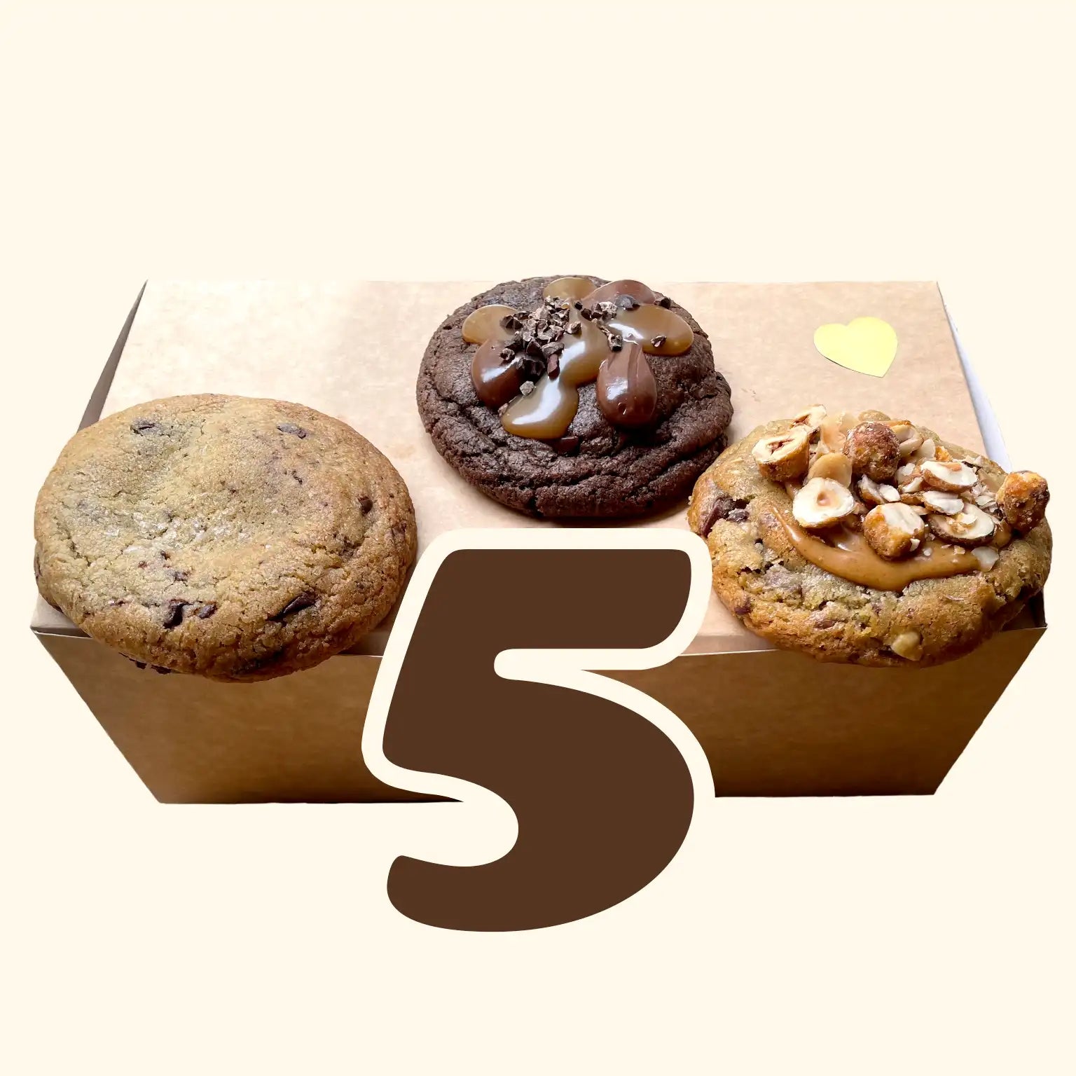 Embrace the element of surprise and let our talented bakers surprise you with an exquisite selection of five freshly baked Spongecookies.